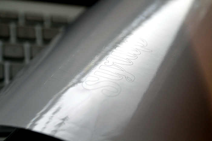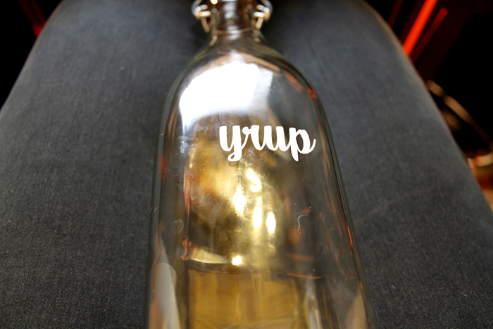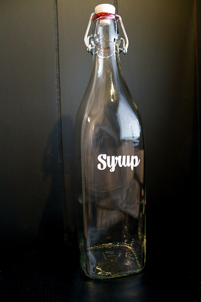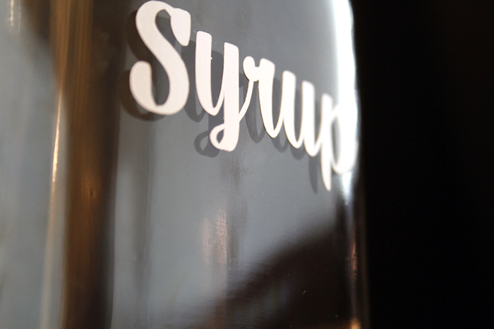 I’m now the very (very) happy owner of a Silhouette Cameo! Can I tell you how much of a sexy beast it is? No? Well, it is. Got my order of self-adhesive vinyl in today and got to work! I’ve spent the past few weeks reorganizing our kitchen, trying to figure out what’s not working and why everything always ends up on the island. Yenno, besides the fact that we’re allergic to putting things away. So there’s a bunch of new containers living among us now. I wanted to get my Martha on and label them, but those labelers she uses just don’t do it for me. This definitely wasn’t an easier method, but a prettier one I think. The label was actually supposed to say ‘Maple Syrup’ but there was a little mishap when I went all X-acto knife crazy towards the end there. Syrup on it’s own works though, at least you still know what’s going on in the bottle. So excited to eat pancakes and waffles alluvasudden!