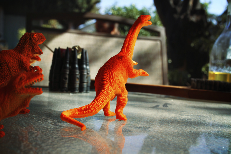 This weekend involved an overindulgence in everything lazy. Except trying out the ‘Best Marinade in Existence‘ as recommended by Ms. Teigen. Dude, if you’re in need of a new marinade, or just you know… like to eat really deliciously tender and juicy steak — MAKE THIS NOW. We used chuck steak because it was $3/lb. versus everything else that was over $10/lb. Maybe we’re just cheap and our taste buds know it but we weren’t disappointed. Other than that, I spray painted some plastic dinosaurs, added casters to an old wooden crate (to be used for under-the-bar storage) and watched other beings sleep.